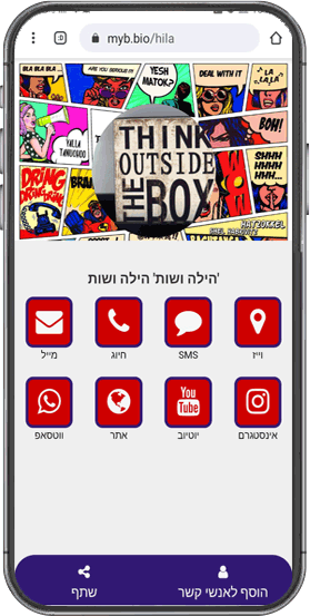 שלי כרטיס ביקור של חברת my b המוצלחת! כרטיס נוח, קל לשימוש ולעיצוב. בתור מעצבת חשוב שהכל יהיה ויזואלי, היה לי חשוב להנגיש ללקוחות שלי את הפרוייקטים השונים עם התמונות וזה חלק מהדברים המופלאים שהכרטיס ביקור יכול לעשות. ממליצה בחום על שירות נפלא ופלטפורמה מוצלחת המוכיחה את עצמה כל פעם מחדש